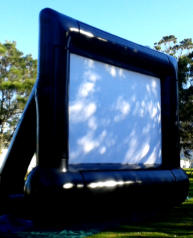 Portable blow-up movie screen. Rear and front projection. 5.5m High & 9.0m Wide. 7000 Lumen Full HD Projector, Cordless mic, mixer, amp and speakers that covers a rugby field with 1 500 spectators. Setup fee and staff to manage system included. Fuel charged at R 5.50 pkm from our offices in Pretoria. Client to supply the movie ..equipment rental only R 6500.00 per evening